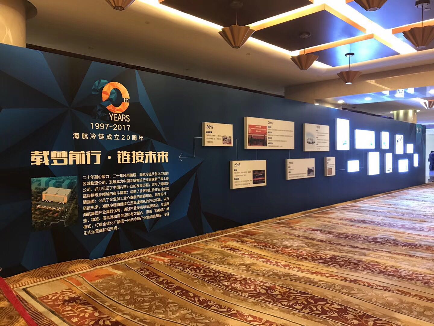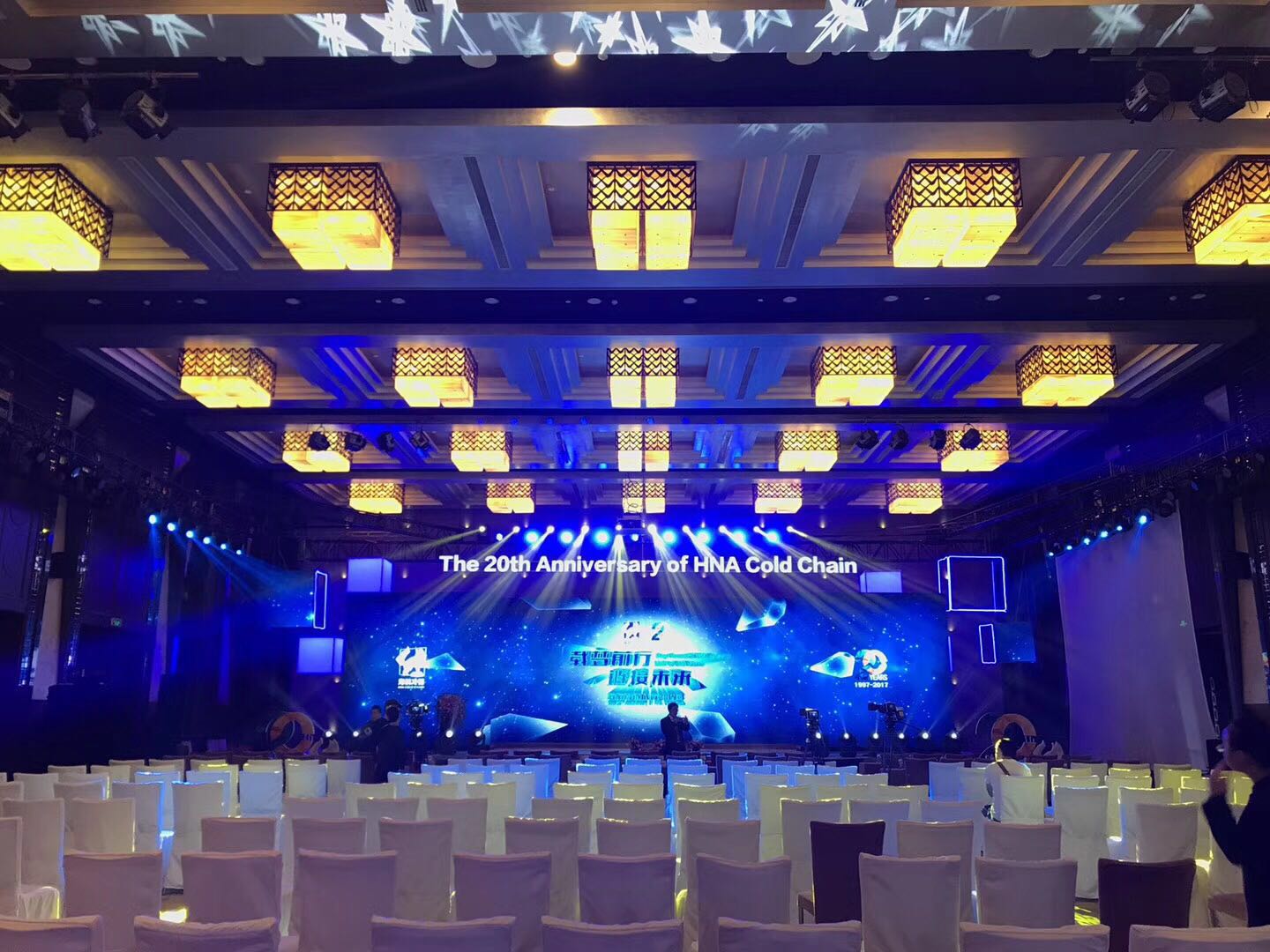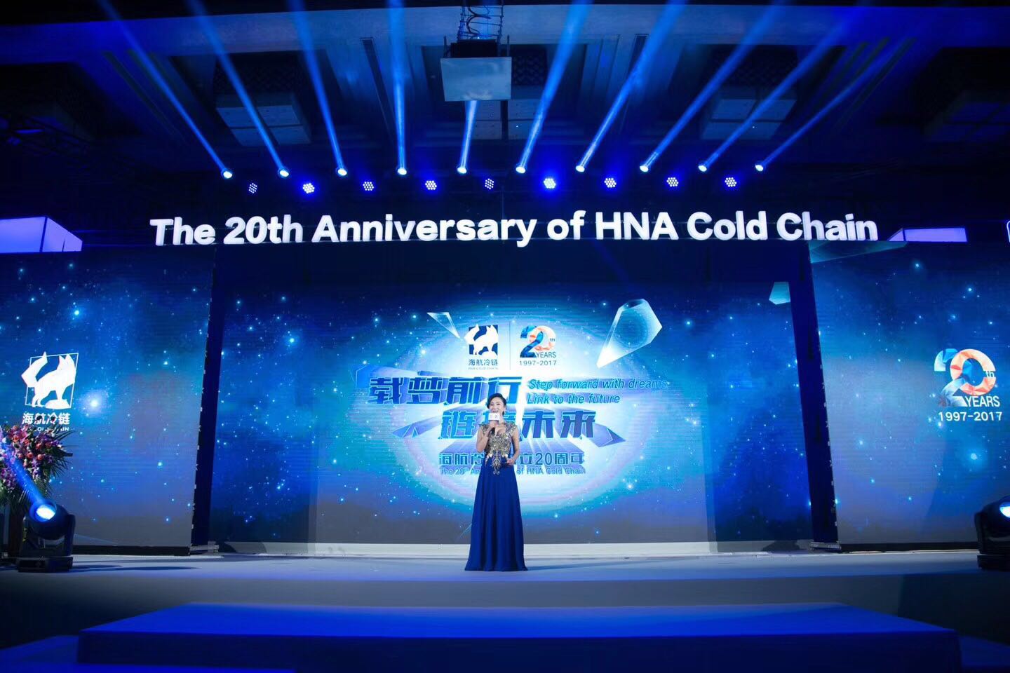 為創造一種生動活潑的立體演出效果,將傳統的舞臺擯棄,突出冷鏈集團在新時代下蓬勃發展的主題,采用科學藍白,同時也寓意著有科學力量作為冷鏈的后盾,在今后的市場經濟下有絕對的競爭力